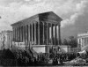 La moindre hauteur du podium partiellement enfoui et le parement en moellons qui existait avant la restauration de Grangent devaient attirer les escaladeurs intrépides. De même, un voyageur de cette époque se plaint, à la suite de bien d'autres, que des enfants "cassent, à coups de pierre, les ornemens de quelques-uns des monumens antiques" (Le Moniteur Universel, 14 nivôse an VII). En 1837 encore, Stendhal se souviendra : "Dans ma première jeunesse, j’ai vu la Maison Carrée en butte aux outrages les plus dégradants : des centaines d’enfants attaquaient avec des cailloux les oiseaux qui nichaient dans les sculptures des chapiteaux. »